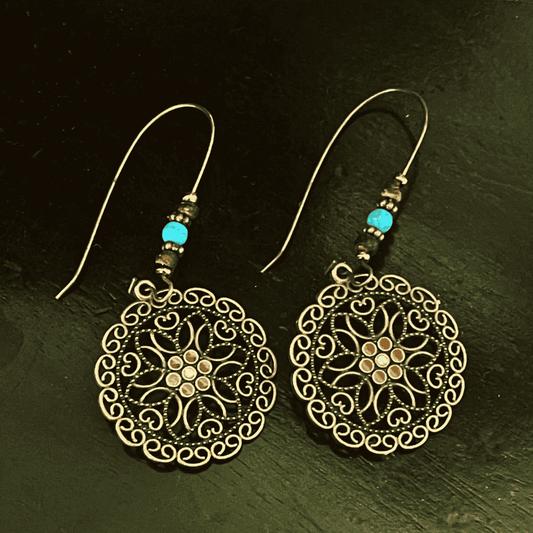 1- Boho Oxidized Turquoise Earrings - Floral Dangle Earrings
