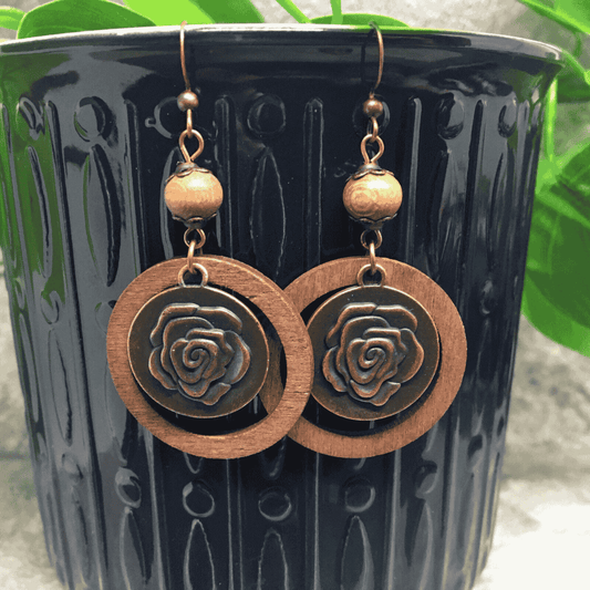 1- Boho Oxidized Gold Plated Earrings - Metal Rose Earrings