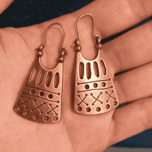 1- Boho Copper Oxidized Earrings - Tribal Handmade Earrings