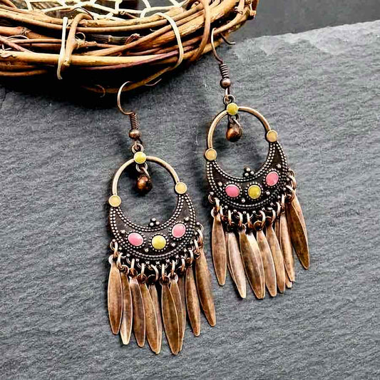 1- Boho Chandelier Metal Earrings - Tassel Fusion Earrings