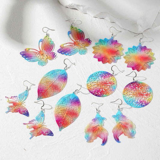 1- Pastel Floral Hoop Earrings - Boho Metal Earrings