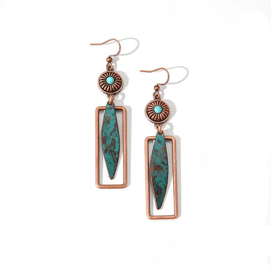 • 1- Boho Oxidized Copper Earrings - Leaf and Wood Earrings