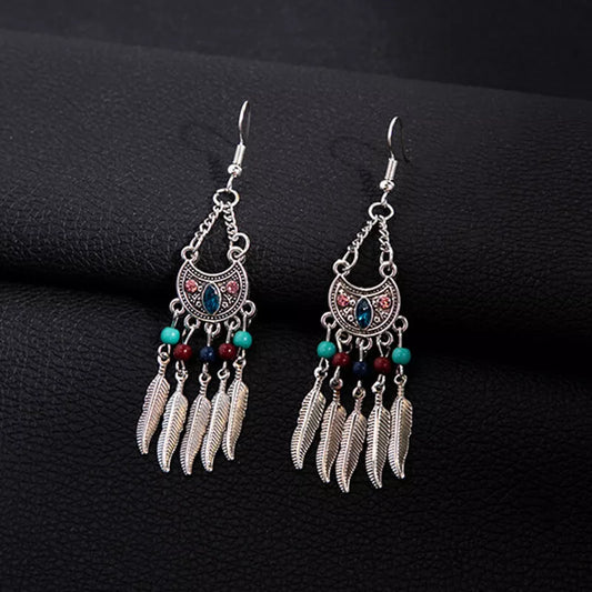 Bohemian Beaded Chain Long Earrings(Clear Beads)