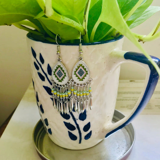 Ethnic Dangling Earrings-Light Green Earrings-Silver Earrings