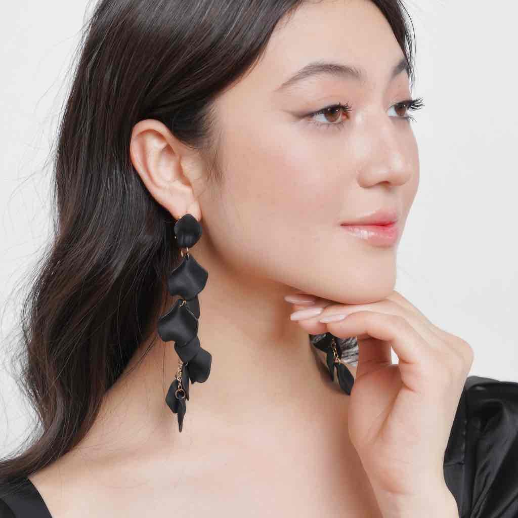 Elegant Black Earrings-Statement Earrings-Geometric Flower Earrings