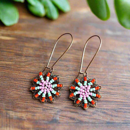 Beaded Flower Drop Earrings