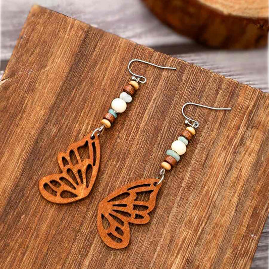 1- Boho Handmade Wooden Beaded Drop Earrings