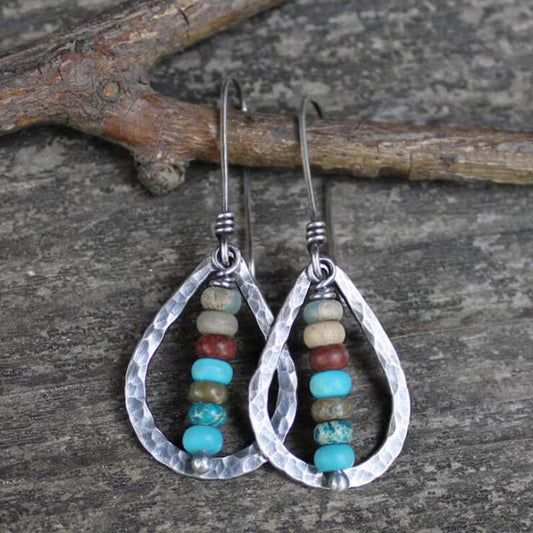 1- Boho Turquoise Teardrop Earrings - Oxidised earrings for Women
