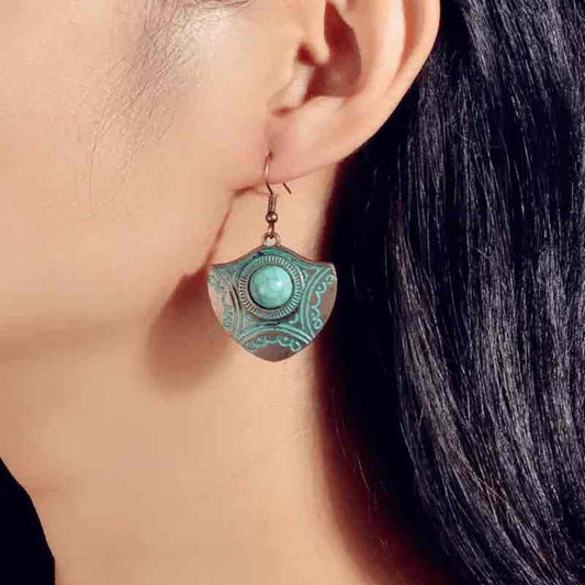 1- Ethnic Earrings for Women - Turquoise Metal Danglers