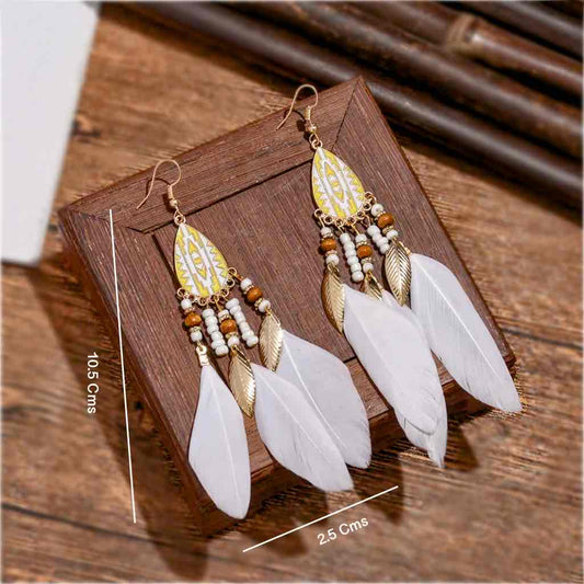 Premium | White Bohemian Feather Earrings - Style 1