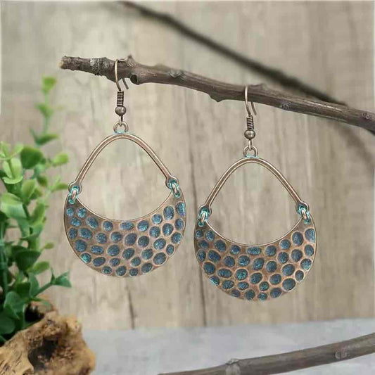 Boho Oxidized Earrings - Metal Textured Earrings (Blue)