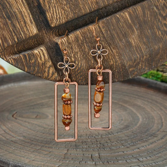 1- Rustic Rounds Boho Metal Earrings - Round Bead Drop Earrings