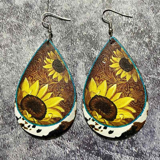 Western Earrings-Wood Sunflower Earrings