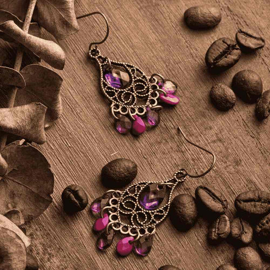 Antique Earrings-Boho Purple Stone Earrings |
