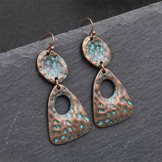 1- Boho Oxidized Copper Earrings - Tribal Dangle Earrings