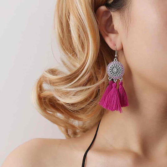 1- Colorful Boho Tassel Earrings - Oxidized Drop Earrings