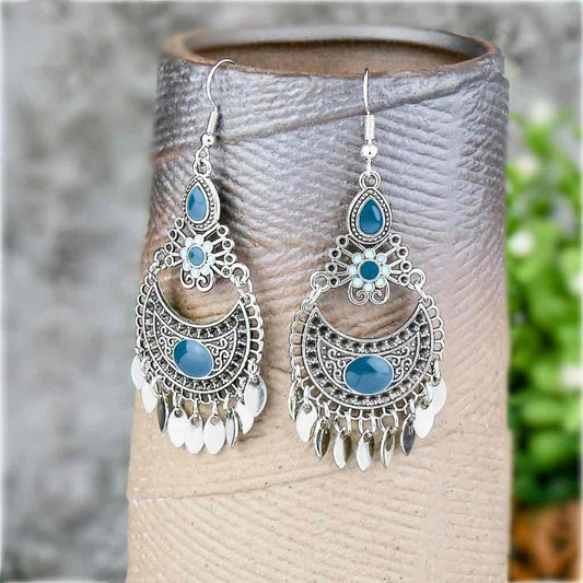 1- Boho Turquoise Drop Earrings - Oxidised earrings for Women