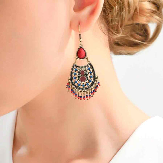 Premium | Ethnic Tear Drop Gem Earrings