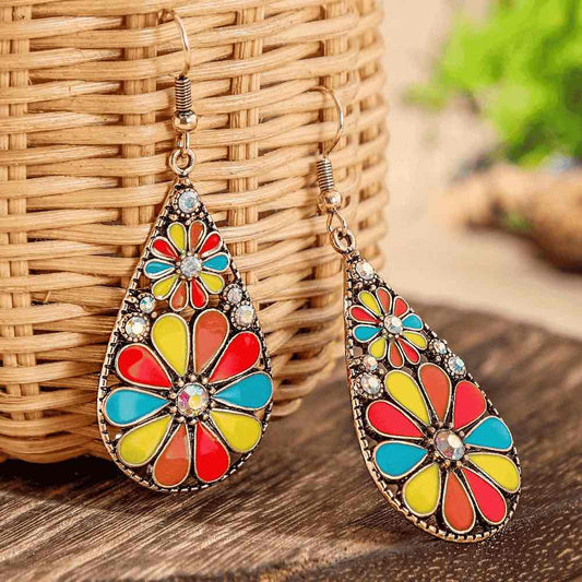 1- Colorful Metal Floral Drop Earrings - Teardrop Earrings for Women