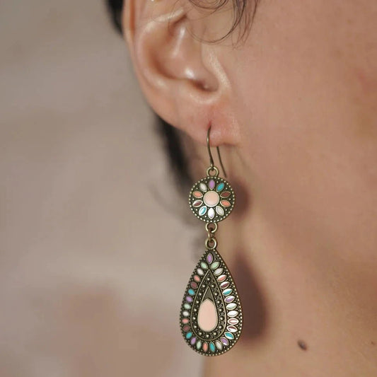Premium | Ethnic Tear Drop Gem Earrings