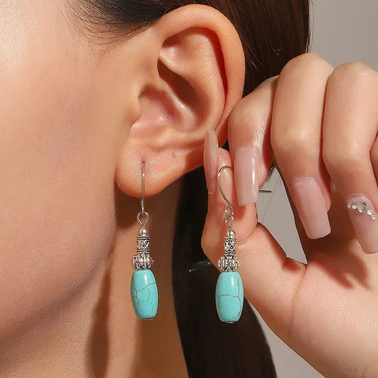 1- Turquoise Dreams Metal Drop Earrings - Boho Drop Earrings